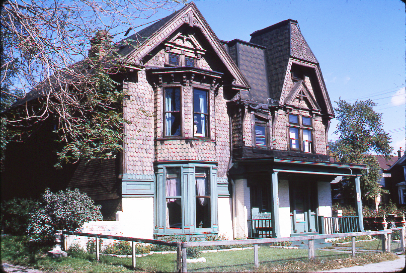 View of a two-story, wooden-frame Queen Anne style house located at 2755 Monroe. House has bay windows, decorative gables and a covered entry porch. Handwritten on mount: "2755 Monroe, 10-4-64."