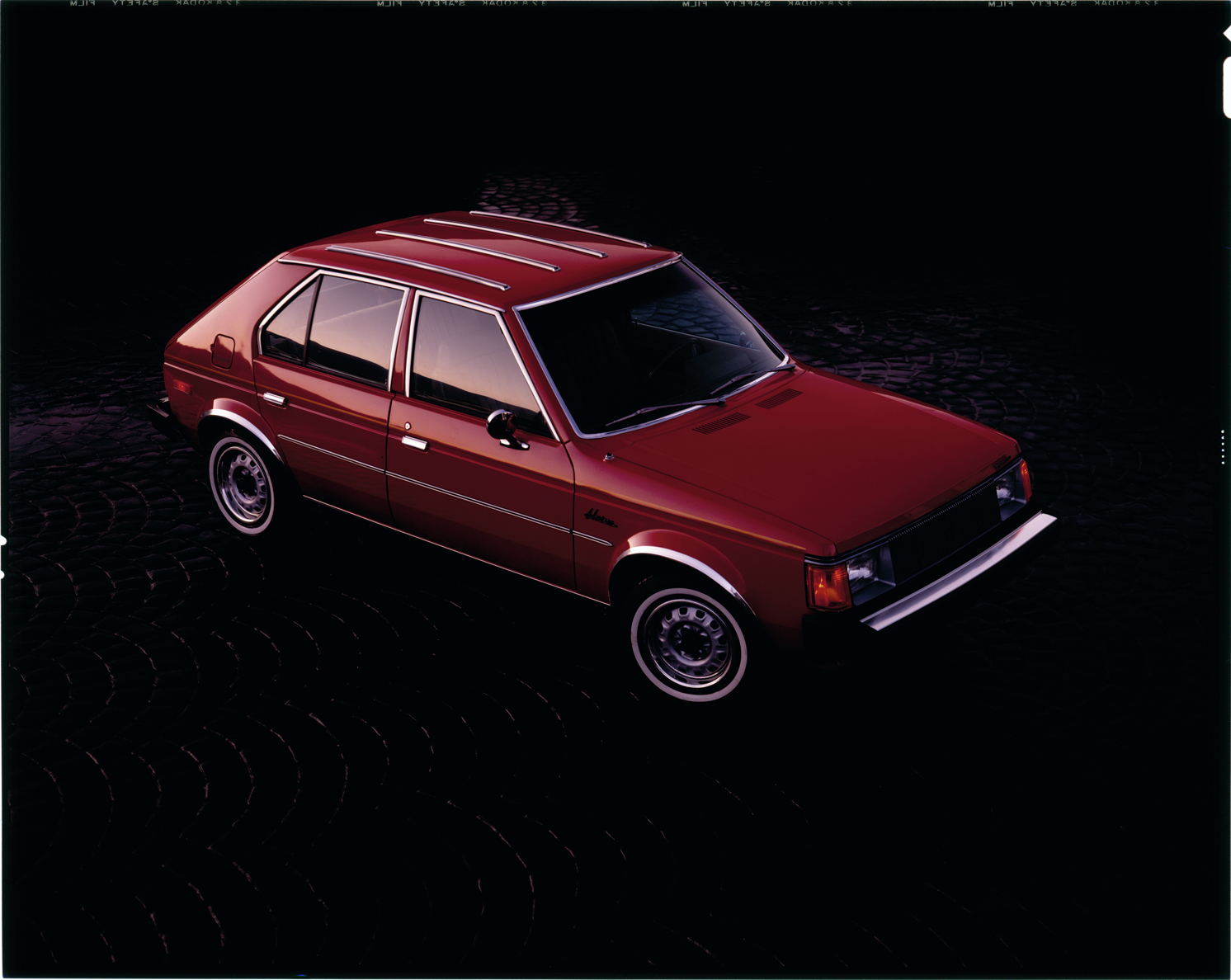 View of a Plymouth Horizon sedan. Label on sleeve: "Chrysler Corp., Plymouth Horizon, 1980s."