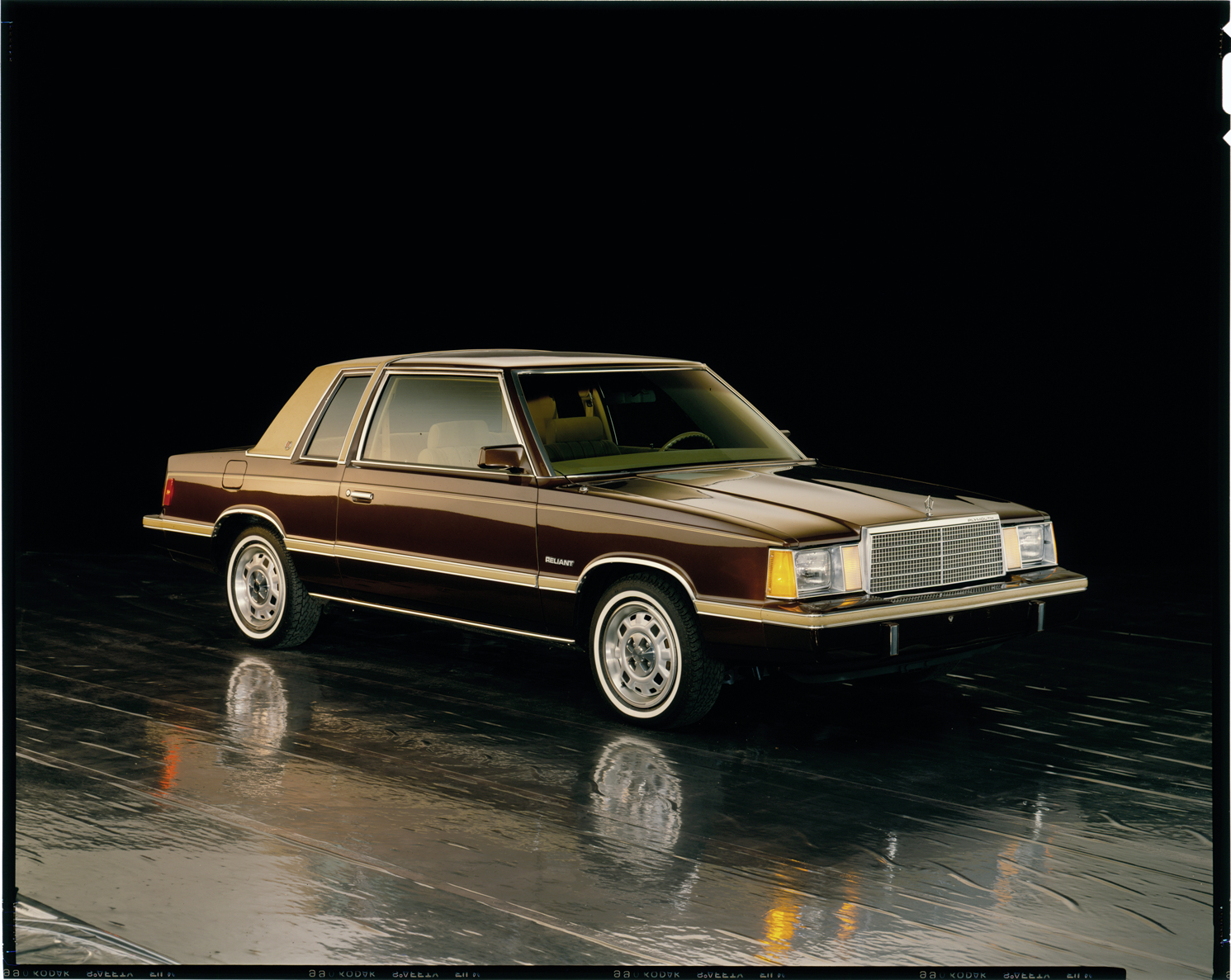 View of a Plymouth Reliant coupe. Label on sleeve: "Chrysler Corp., Plymouth Reliant, 1980s."