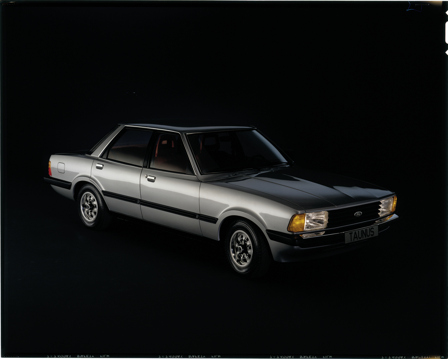 View of a Ford Taunus sedan. Label on sleeve: "Ford Germany, Taunus, 1970s."