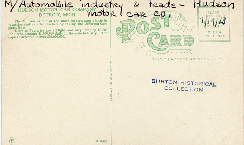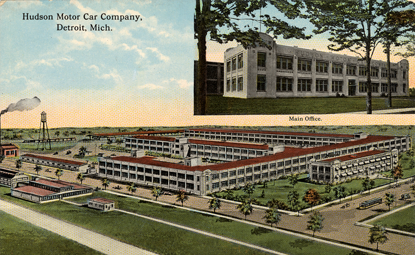 View of the factory and main office of the Hudson Motor Car Company with brief description.
