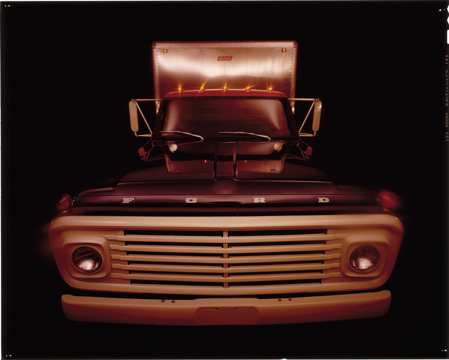 Front view of a Ford truck. Label on sleeve: "Ford Motor Co., Ford trucks, 1970s."