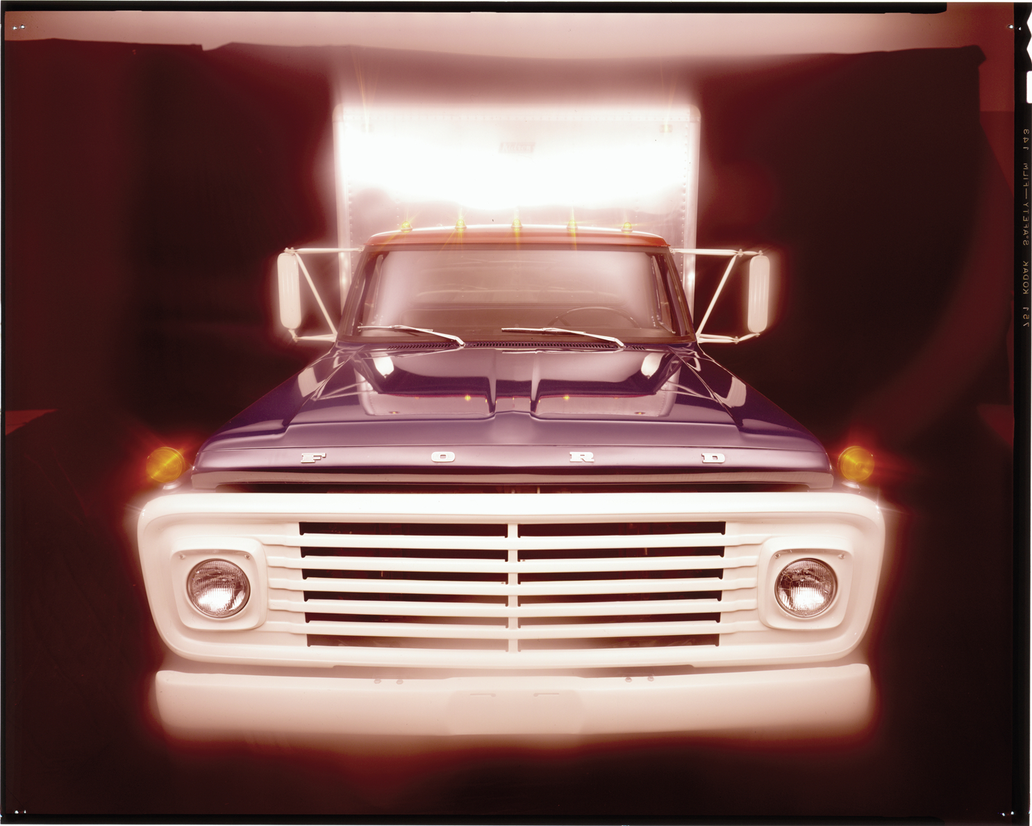 Front view of a Ford truck. Label on sleeve: "Ford Motor Co., Ford trucks, 1970s."