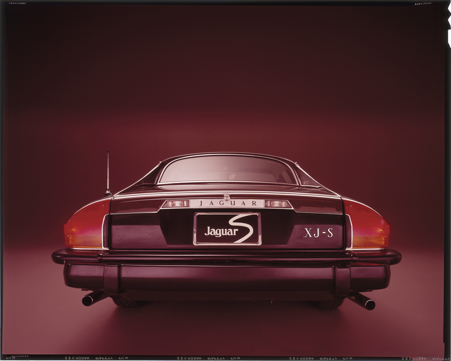 Rear view of a Jaguar XJ-S automobile. Label on sleeve: "Jaguar XJ-S, 1976-90s."