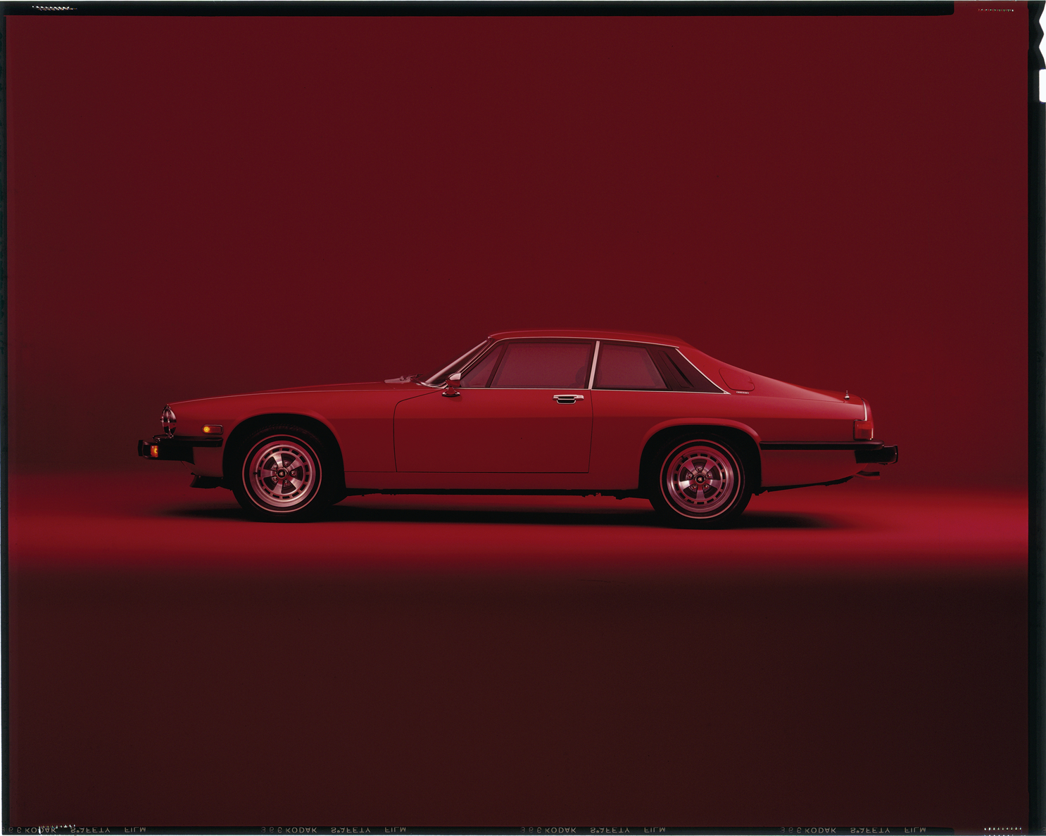 View of a Jaguar XJ-S coupe. Label on sleeve: "Jaguar XJ-S, 1976-90s."
