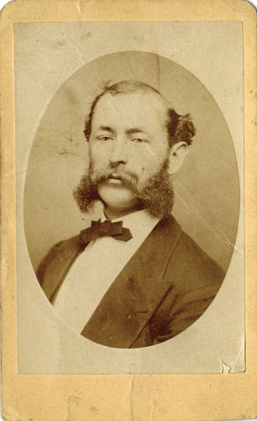 Portrait of James Vernor. Printed on back: "J.A. Brush, photographer. Cor. Woodward Ave. and Larned St., Detroit. Entrance on Larned Street." Handwritten on back: "July 27/72 - Aug 3/72. Vernor, James, Sr., 1843-1927."