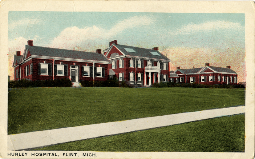 View of Hurley Hospital in Flint, Michigan. Printed on front: "Hurley Hospital, Flint, Mich."