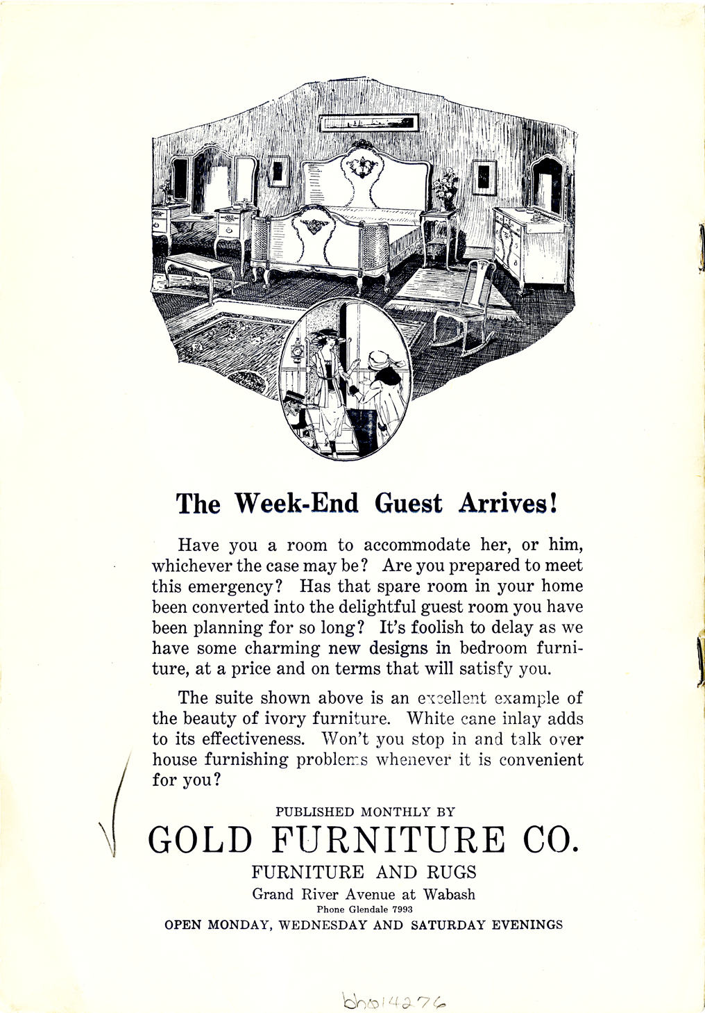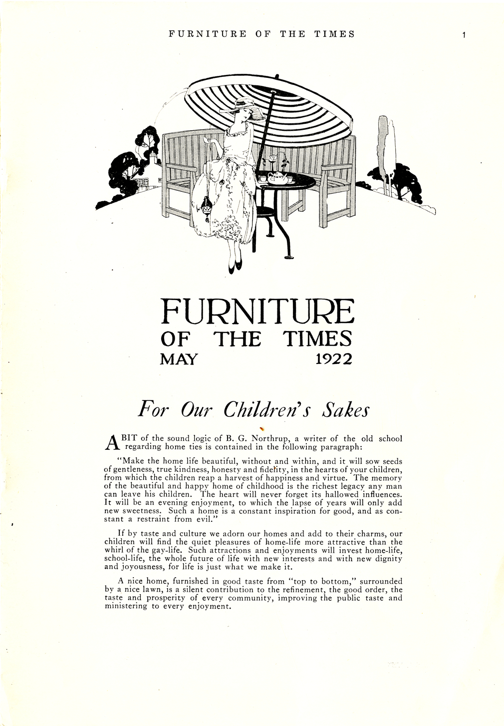 Furniture of the times : May 1922 / Gold Furniture Co. Title from cover. Illustrated catalog of furniture sold by the Gold Furniture Company in Detroit, Michigan.