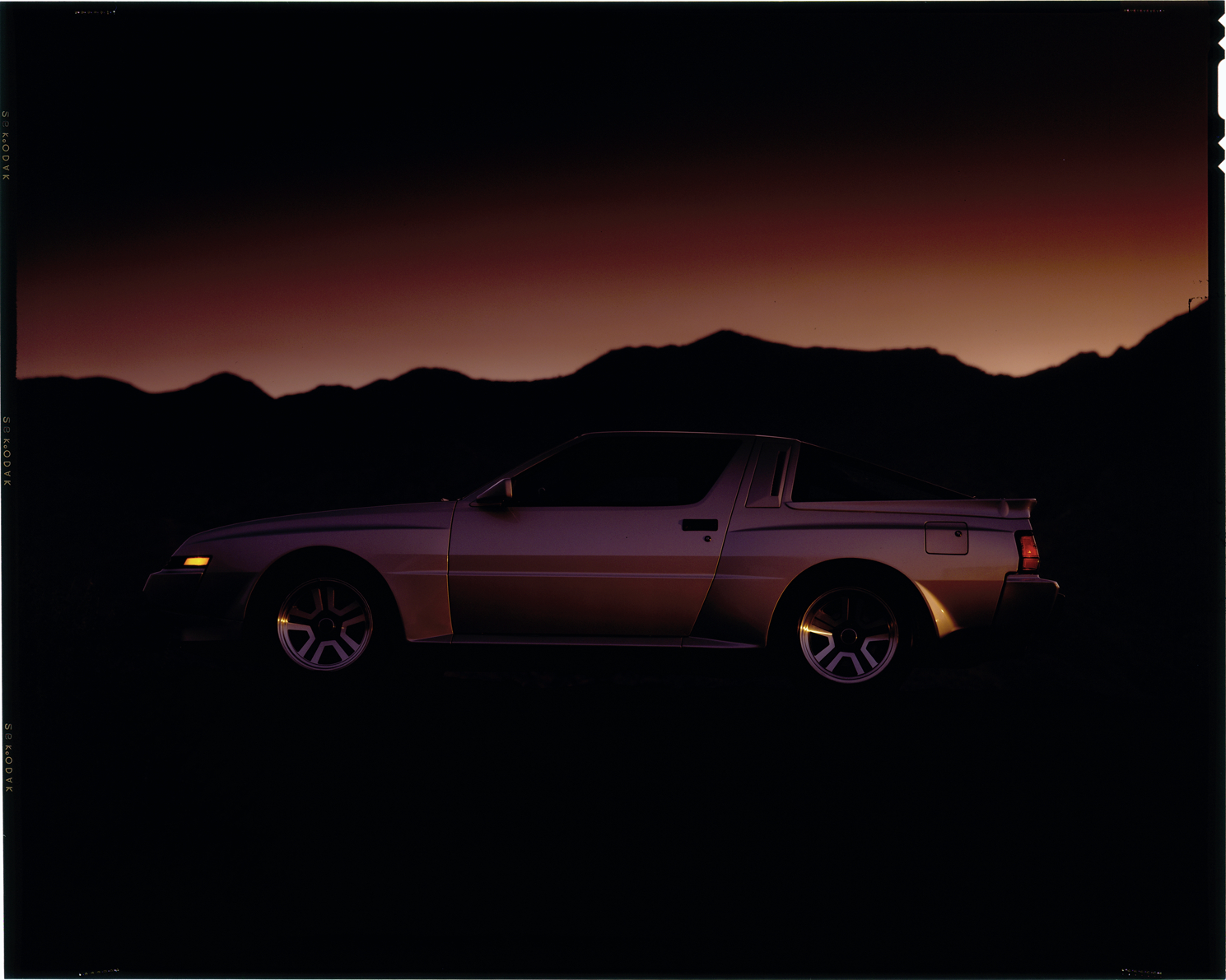 View of a Mitsubishi Starion coupe. Label on sleeve: "Mitsubishi, Starion, 1982-89."