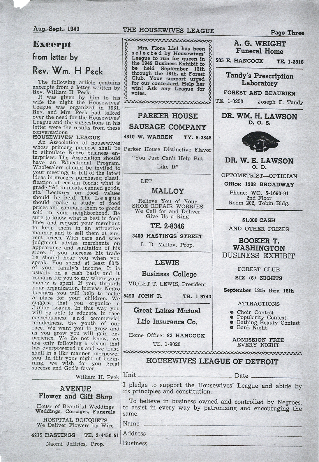 Housewives League bulletin, August-September, 1949