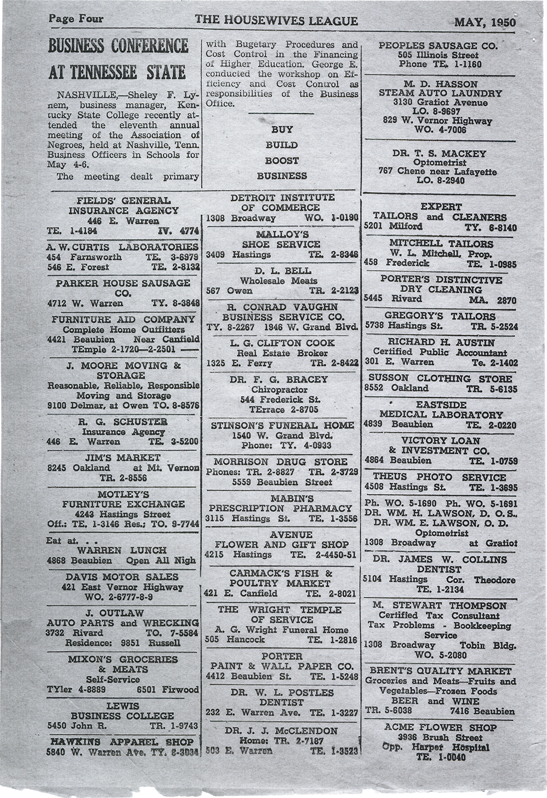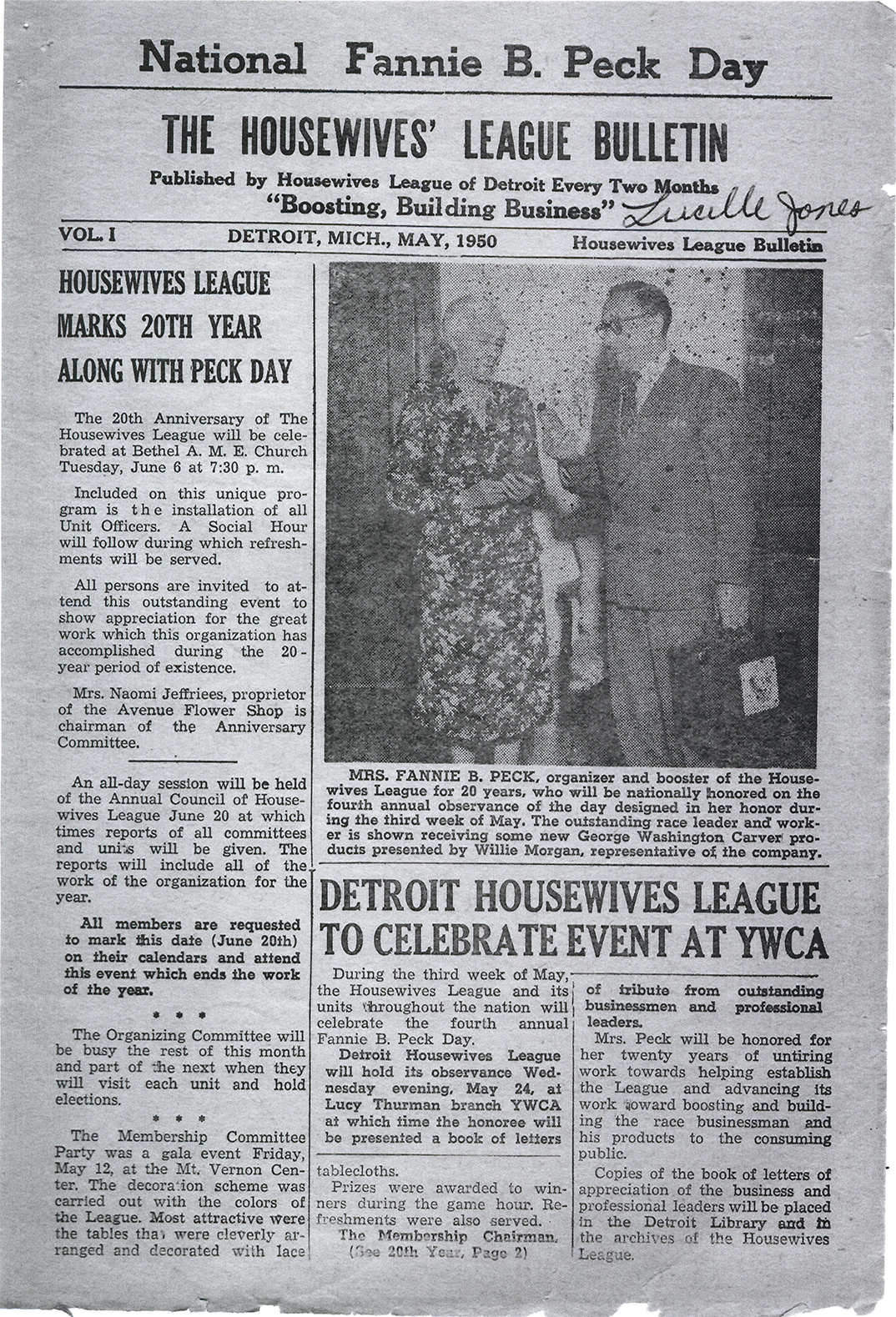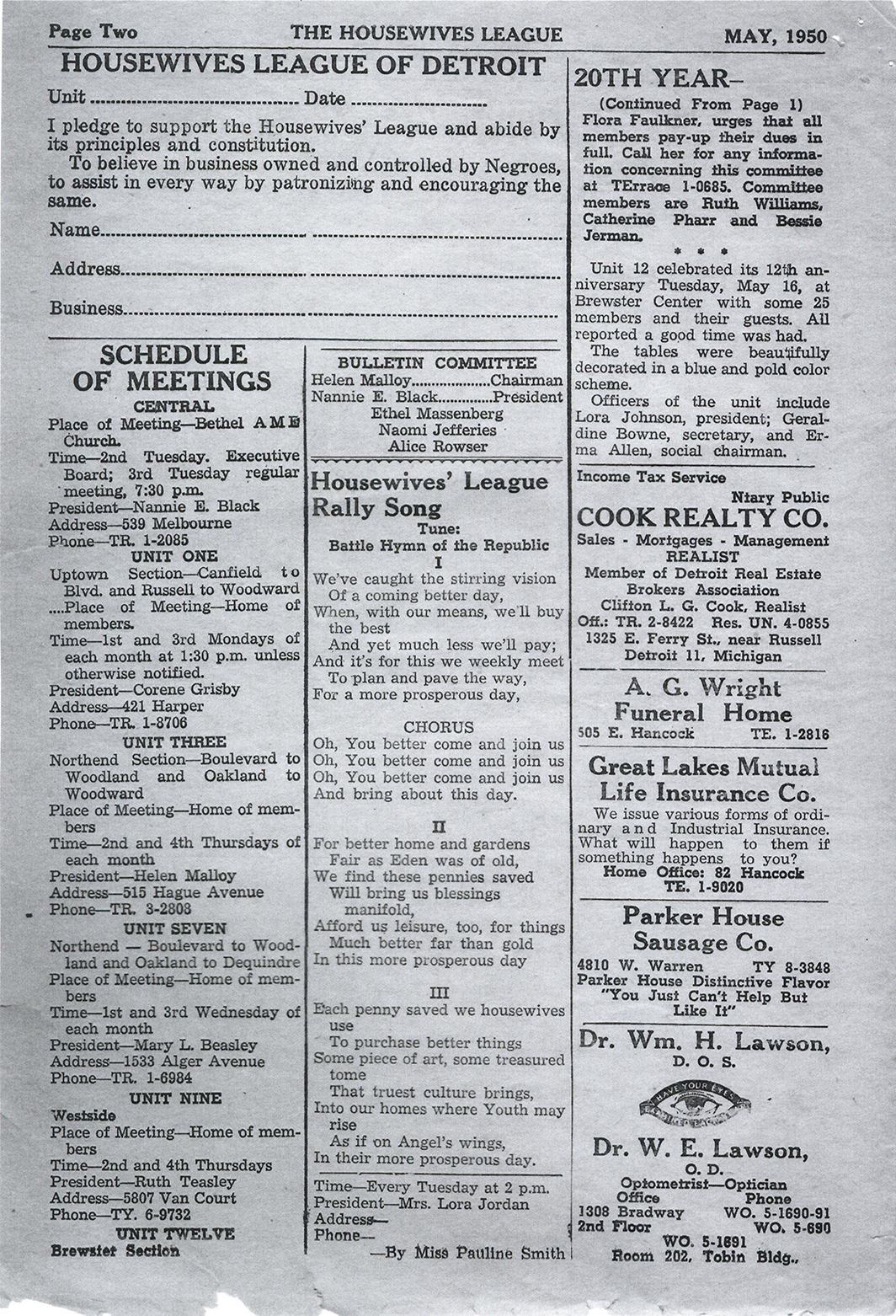 Housewives League bulletin, May, 1950