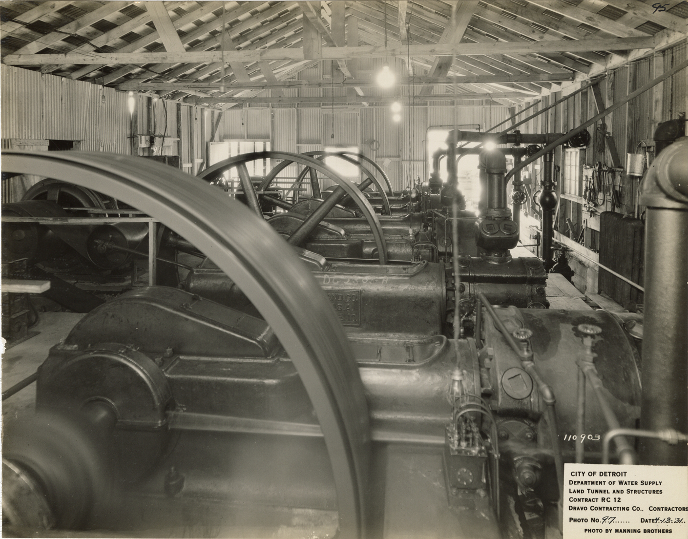 Interior of compressor house, Waterworks Park, Detroit water supply system