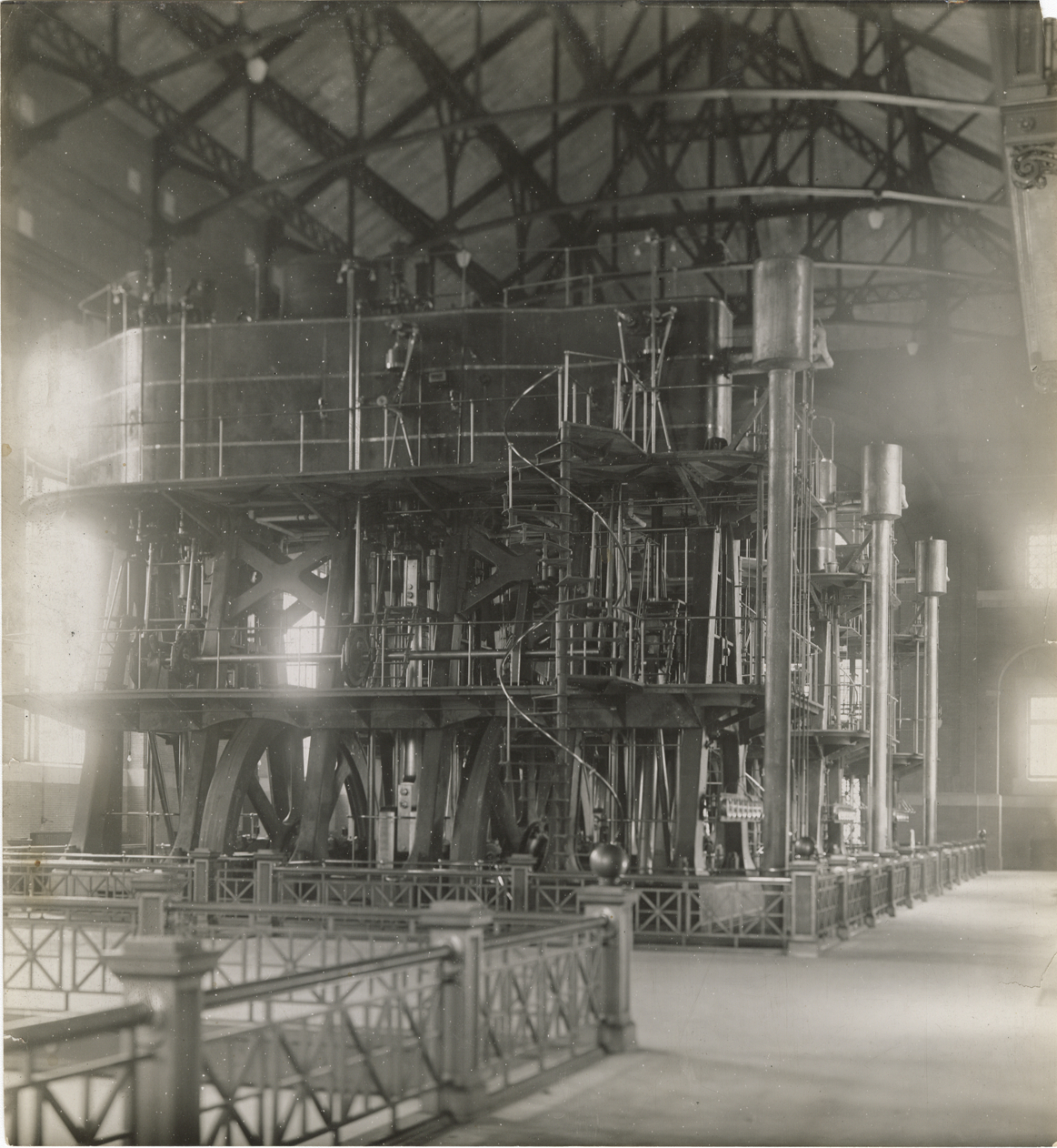 Interior view of pumping station no. 2, Waterworks Park, Detroit water supply system.