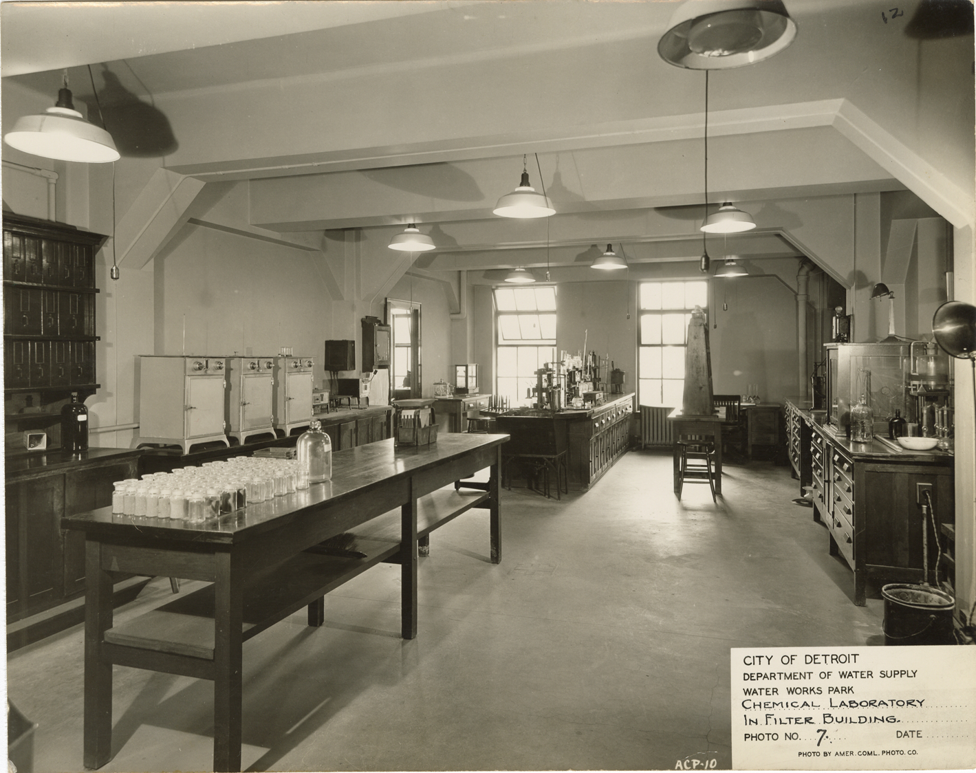 Chemical laboratory in Filtration Building, Waterworks Park, Detroit water supply system