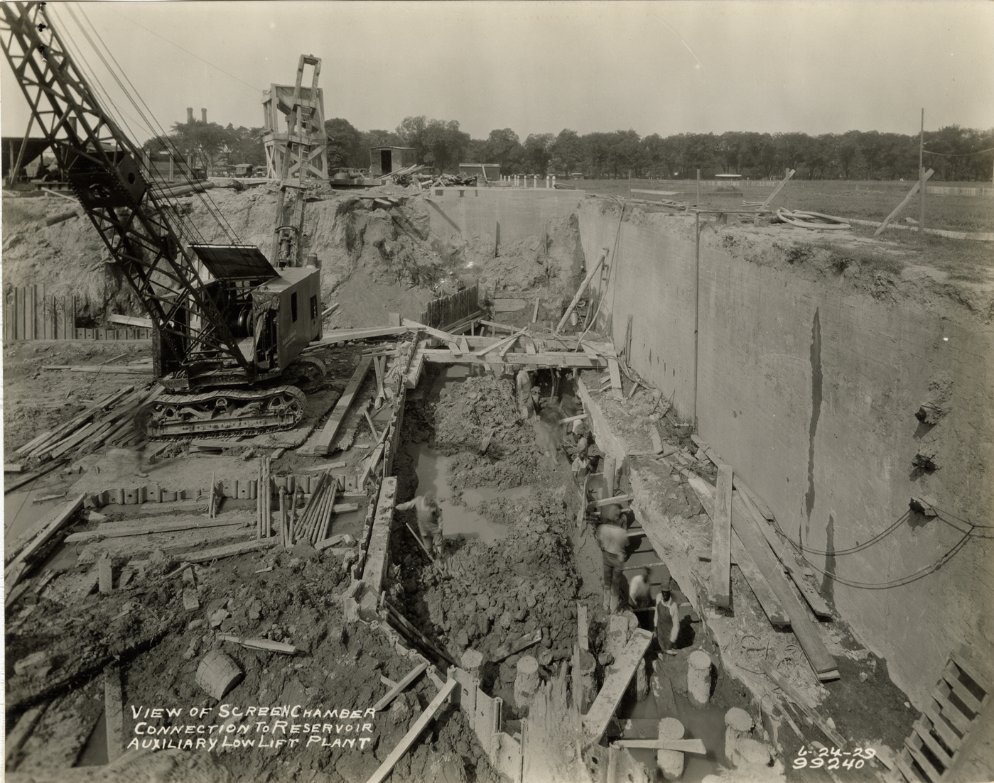 Screen chamber connection to reservoir, auxiliary low lift plant, Waterworks Park, Detroit water supply system