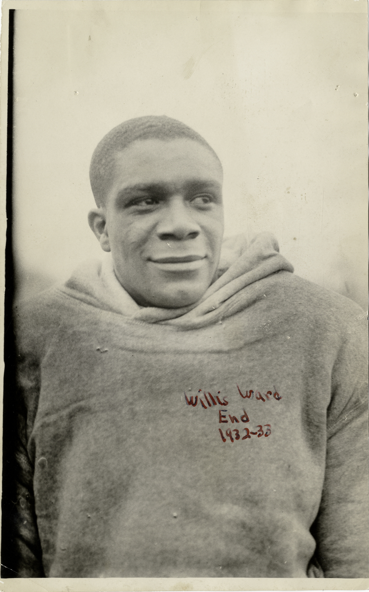 Portrait of Willis F. Ward. Handwritten on front: "Willis Ward. End. 1932-33." Handwritten on back: "Willis Ward, r end."