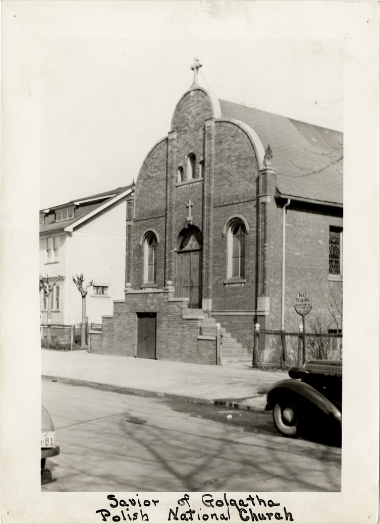 View of Our Savior on Golgatha Polish National Catholic Church. Handwritten on front: "Savior of [sic] Golgatha Polish National Church."