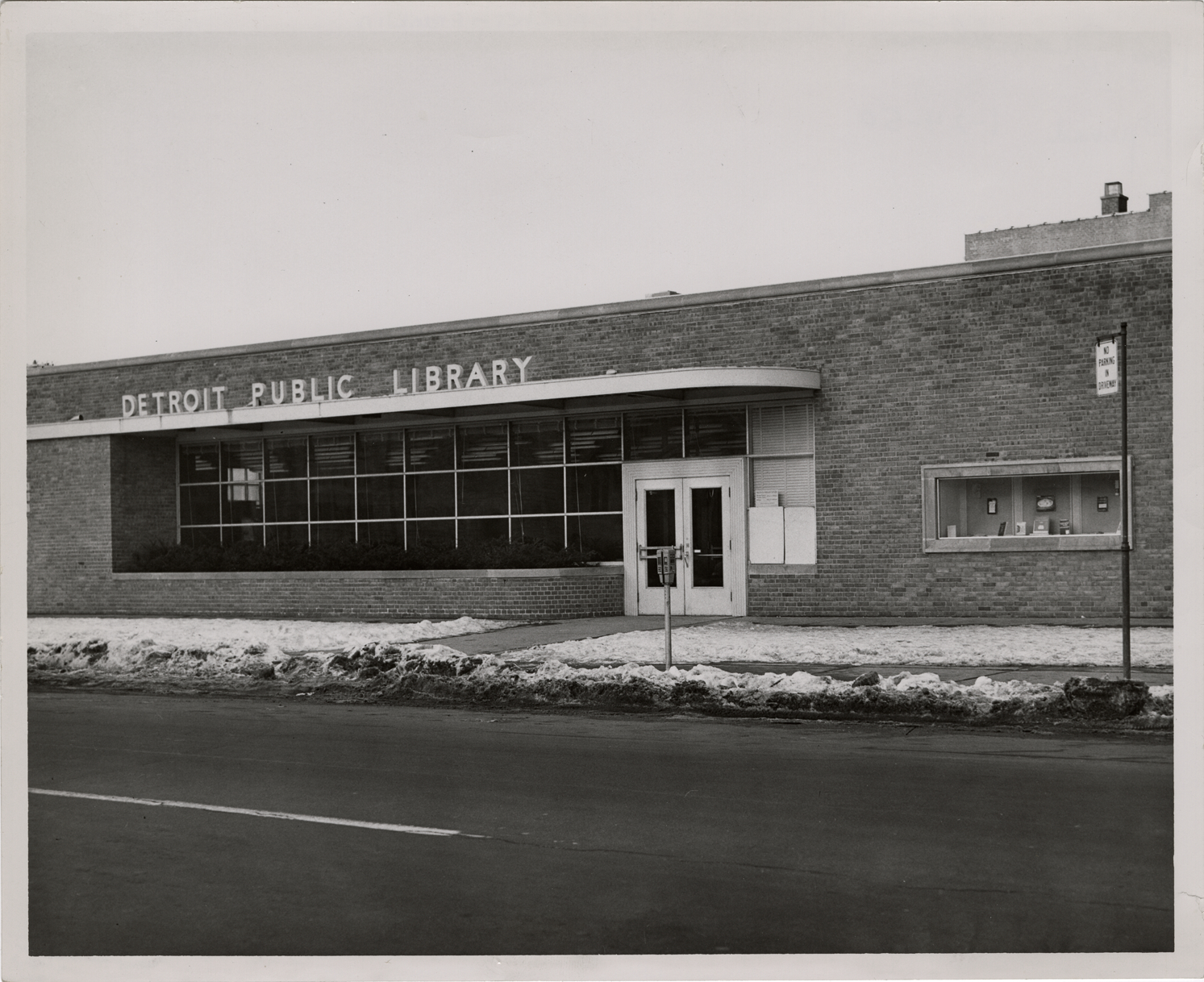 View of the Franklin Branch Library, Detroit Public Library. Handwritten on back: "Benj. Franklin, opened 1-24-50."