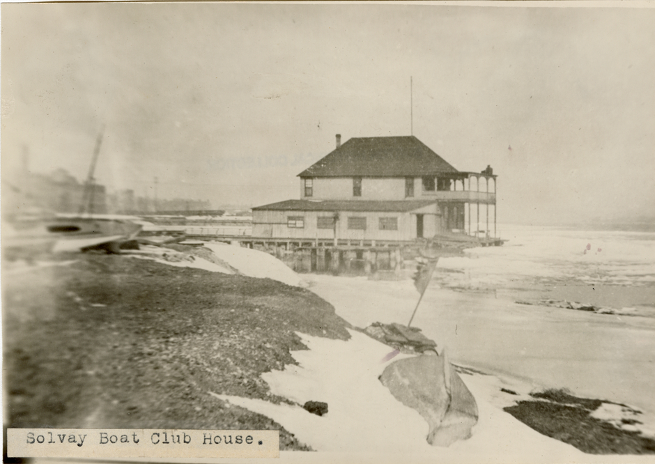 View of the Solvay Boat Club. Label on front: "Solvay Boat Club house."