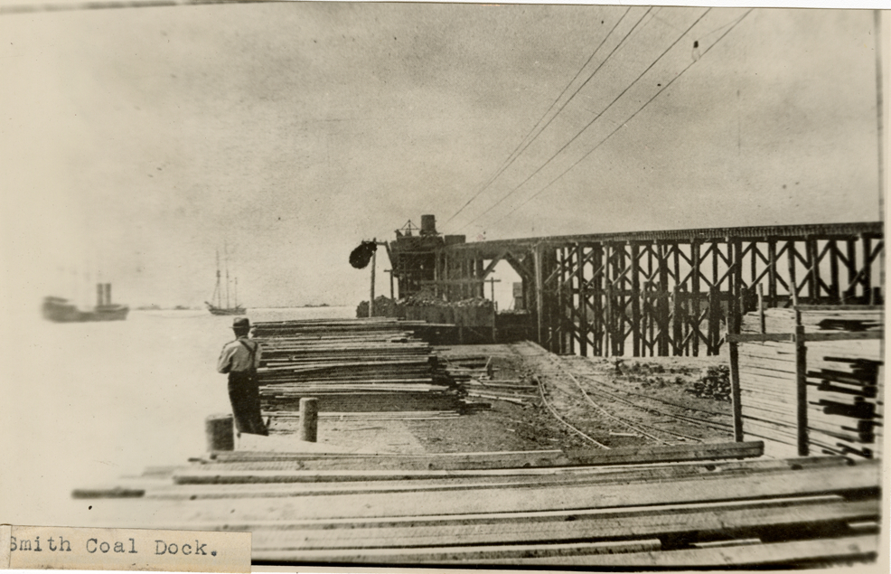 View of the Smith coal dock, Delray neighborhood. Label on front: "Smith coal dock."