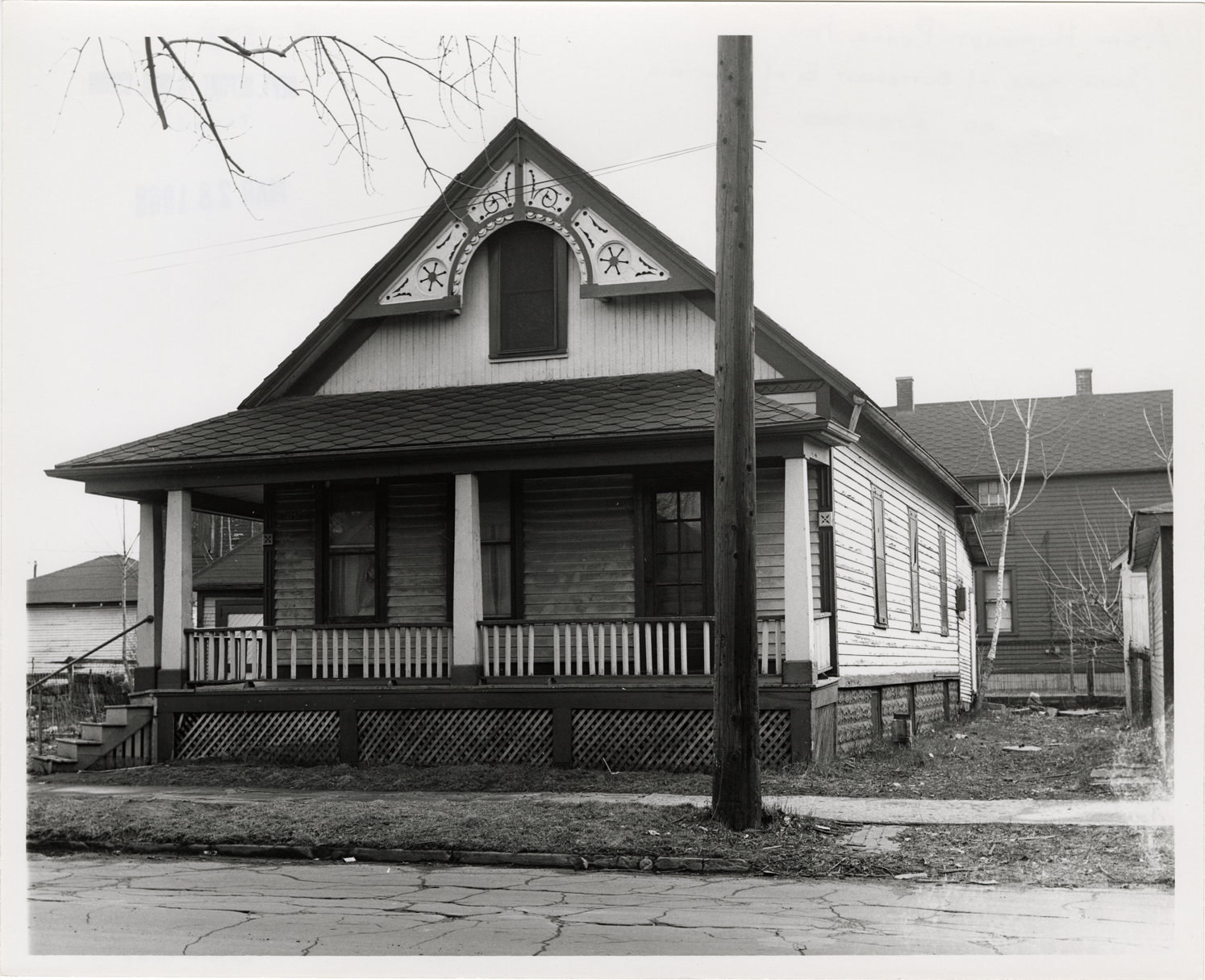 View of a one-story, wooden-frame house located on Butternut, east of Lawton. Stamped on back: "Taken Mar 28, 1966." Handwritten on back: "Ash-Humboldt Rehab. Proj. South side of Butternut, E. of Lawton. To be acquired."