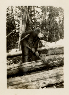 Man chopping logs, Company 1620, Civilian Conservation Corps, Camp Escanaba