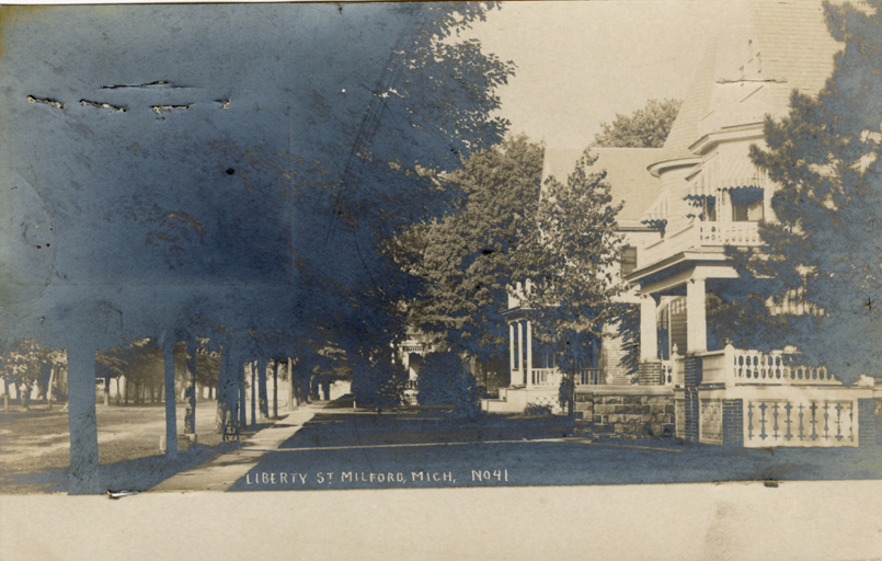 View of houses on Liberty St. in Milford, Michigan. Printed on front: "Liberty St., Milford, Mich. no. 41."