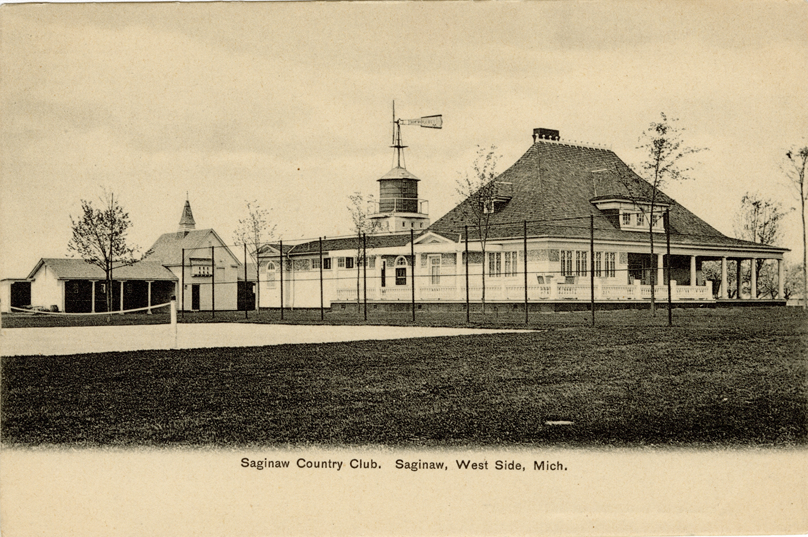 View of the Saginaw Country Club in Saginaw, Michigan. Printed on front: "Saginaw Country Club. Saginaw, west side, Mich." Printed on back: "Published by Brady & Beckmann, Saginaw, W.S., Mich. Germany."