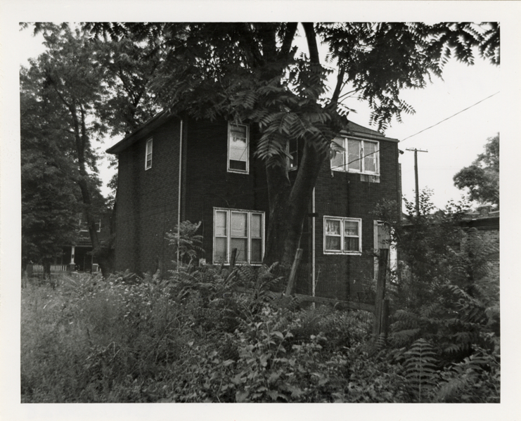 Rear view of a two-story house located at 1711 Delaware. Stamped on back: "Photography by D. Bruce Banta, Detroit." Handwritten on back: "#41, 1711 Delaware."