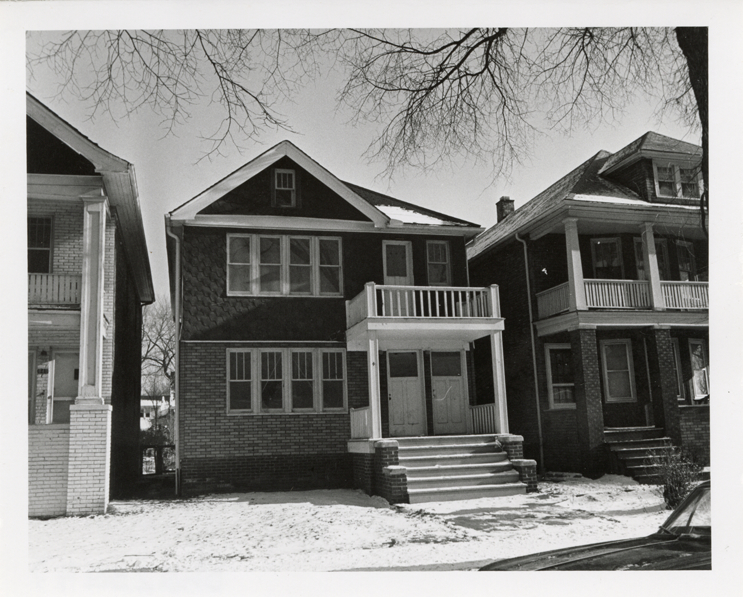 View of a two-story house, possibly a duplex, located at 644-646 Drexel. Stamped on back: "Photography by D. Bruce Banta, Detroit." Handwritten on back: "#209, 644-46 Drexel."