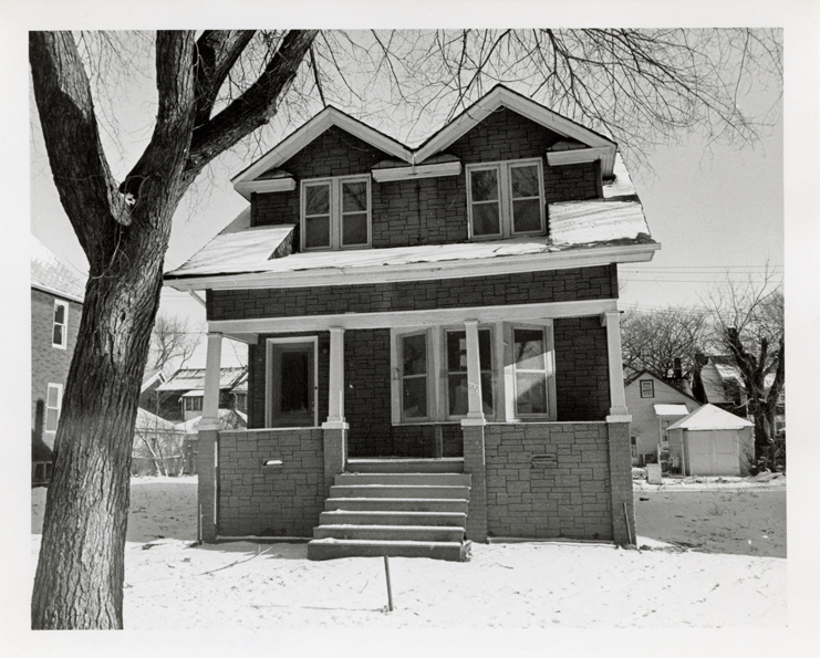 View of a two-story house with covered entry porch located at 540 Lenox. Stamped on back: "Photography by D. Bruce Banta, Detroit." Handwritten on back: "#199, 540 Lenox."