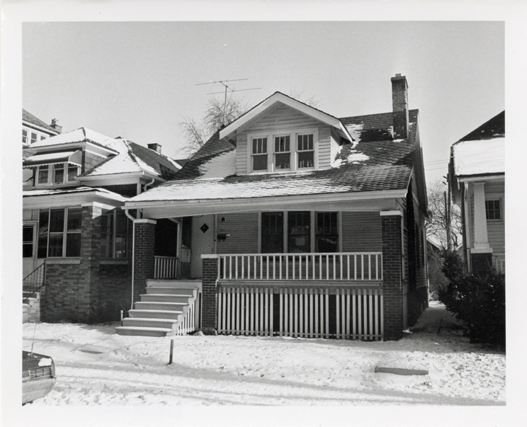 View of a wooden-frame house with covered entry porch located at 518 Lenox. Stamped on back: "Photography by D. Bruce Banta, Detroit." Handwritten on back: "#201, 518 Lenox."