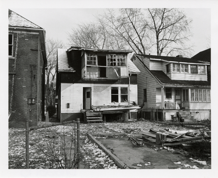 Rear view of a wooden-frame house located at 865 Piper. Stamped on back: "Photography by D. Bruce Banta, Detroit." Handwritten on back: "#223, 865 Piper."