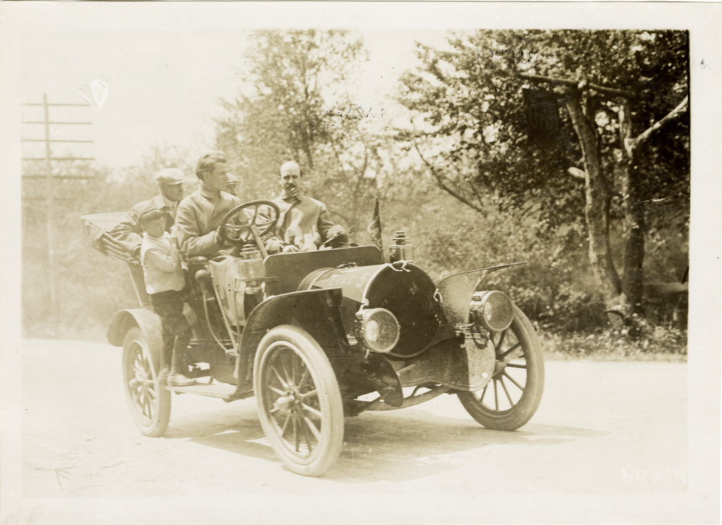 View of motorists in Franklin car no. 5. Stamped on back: "Spooner & Wells, Inc., photographers, telephones 3472-3473 Columbus, 1931 Broadway, New York." Handwritten on back: "Franklin, ca. 1910."