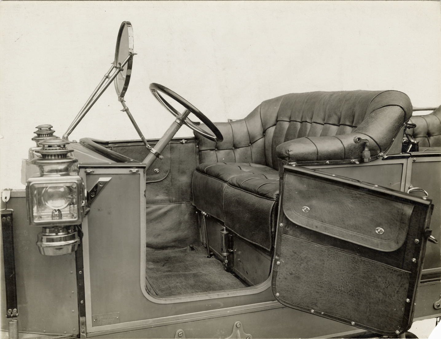 Close-up view of a Franklin car with open door showing interior and front seat. Handwritten on back: "Franklin, ca. 1910."