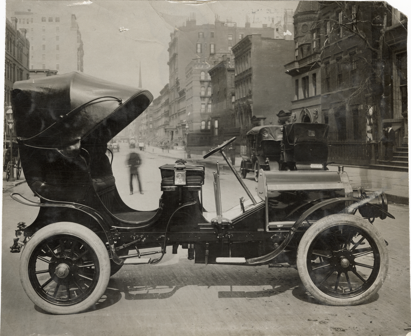 View of a Garford car. Handwritten on back: "Garford, ca. 1908."