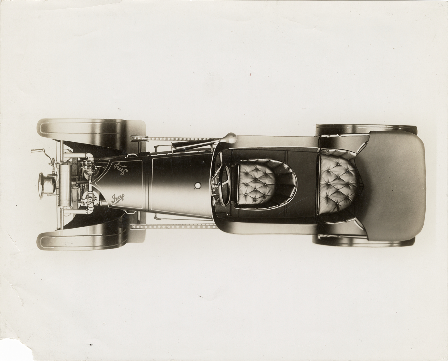 Artist's depiction, overhead view of an Imp cyclecar. Handwritten on back: "Imp cyclecar."