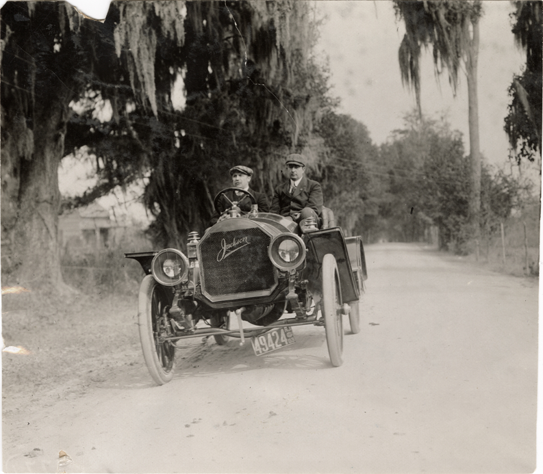 View of motorists in a Jackson car. Stamped on back: "Spooner & Wells, Inc., photographers, telephones 3472-3473 Columbus, 1931 Broadway, New York." Handwritten on back: "Jackson, ca. '09."