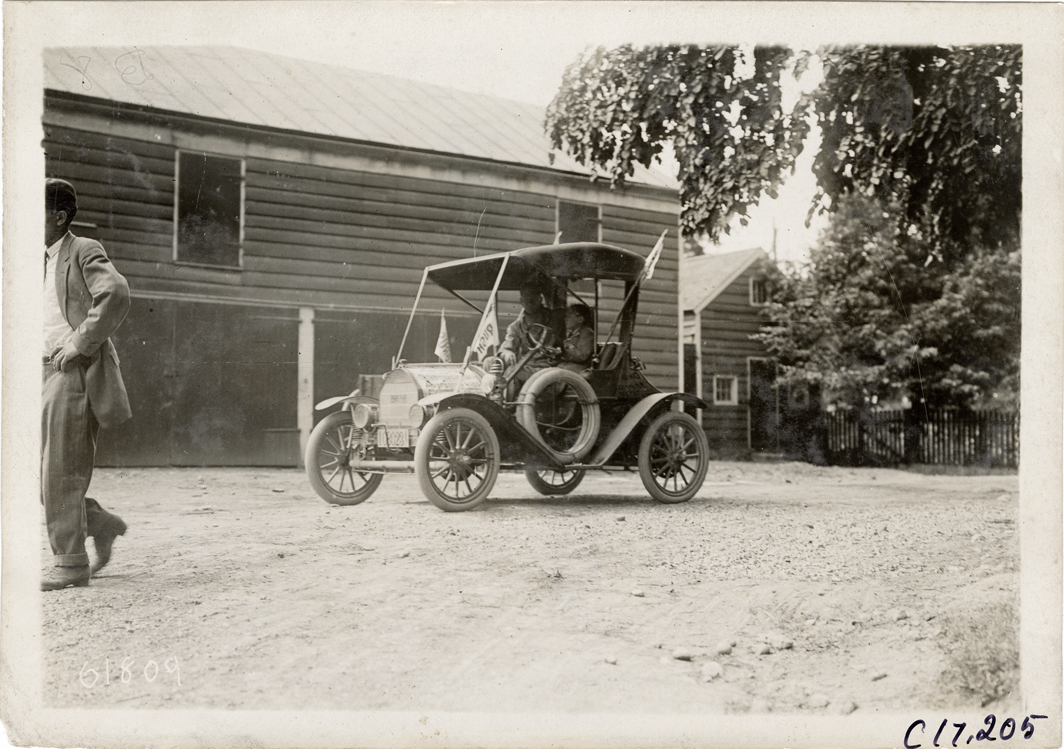 Louis Abernathy and passenger in Brush automobile, 1910 Abernathy Kids New York to Oklahoma Tour