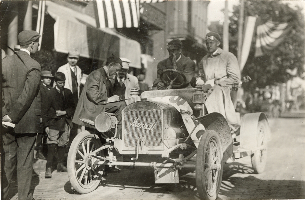 View of motorists in a Maxwell car. Stamped on back: "Spooner & Wells, Inc., photographers, telephones 3472-3473 Columbus, 1931 Broadway, New York." Handwritten on back: "Maxwell, ca. 1909."