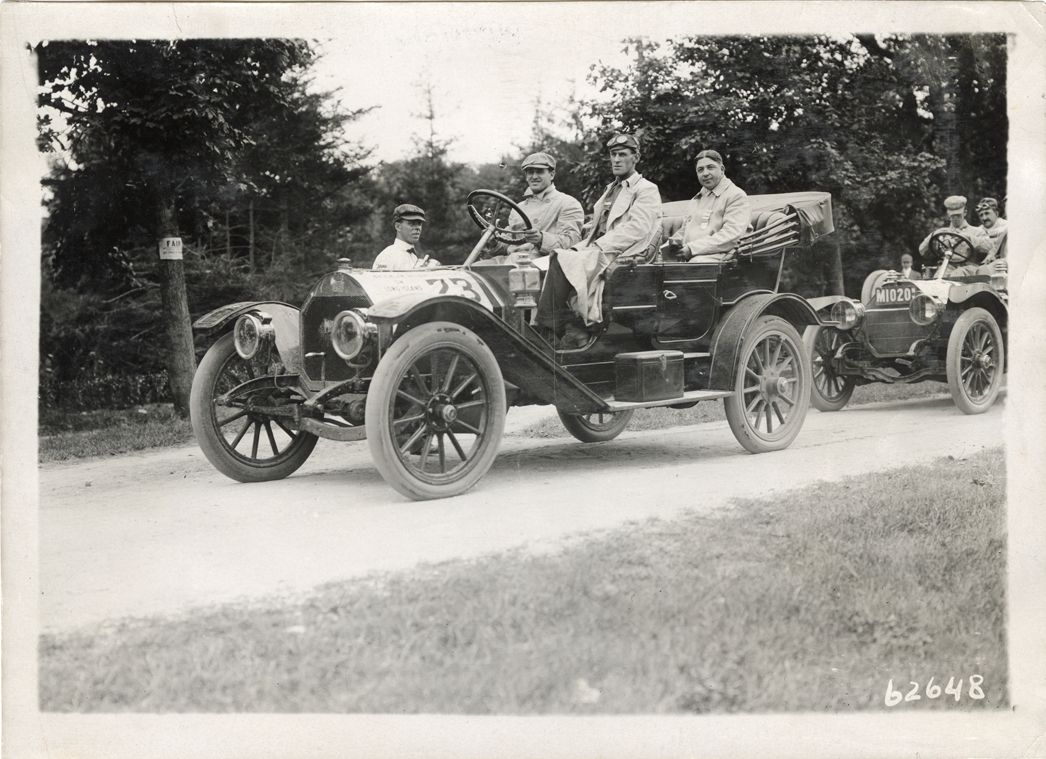 View of motorists posing in Midland car no. 23. Stamped on back: "Spooner & Wells, Inc., photographers, telephones 3472-3473 Columbus, 1931 Broadway, New York." Handwritten on back: "Midland, ca. 1910."