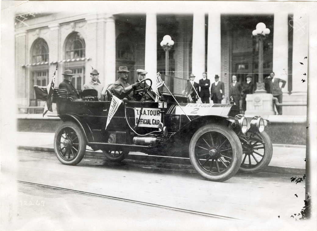 Motorists in 1911 Mitchell automobile, 1911 Touring Club of America Good Roads Tour