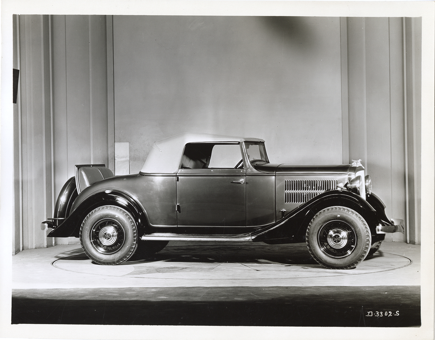 View of a 1933 Essex Terraplane 6 Series K Special roadster. Handwritten on back: "Mar. 6/33. K. Essex Terraplane 6 Special roadster."