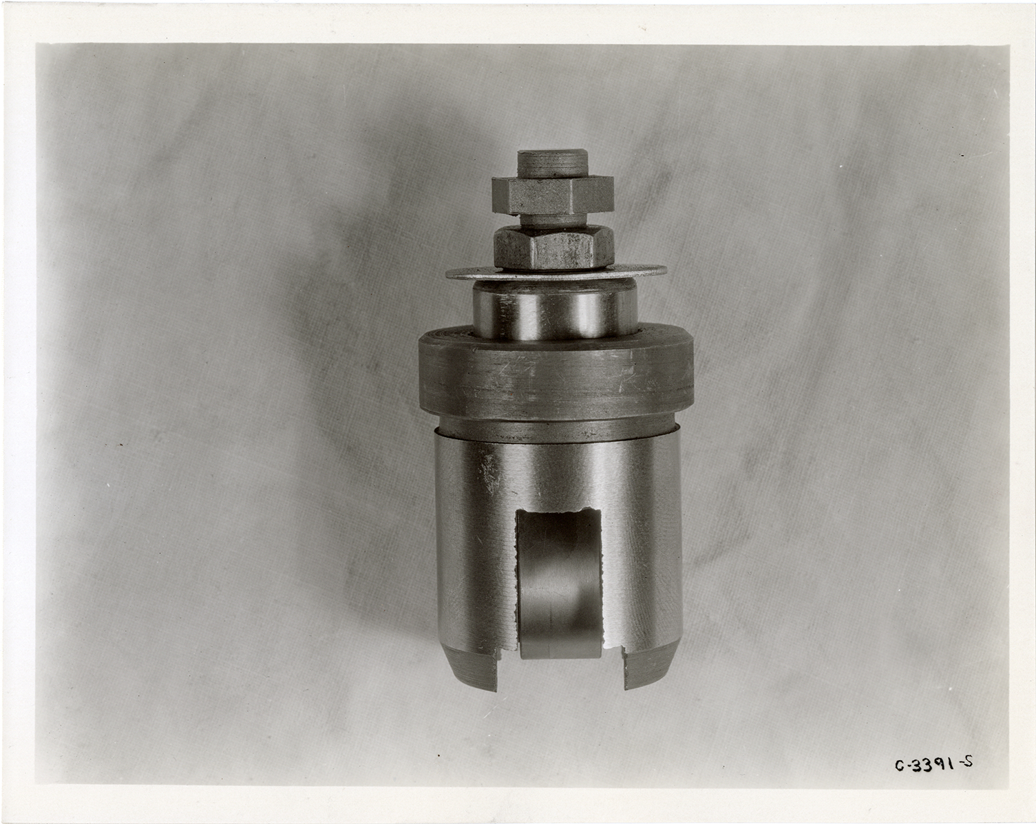 View of a roller tappet for a 1933 Hudson car. Handwritten on back: "2-28-33. Roller tappet, showing shaft."