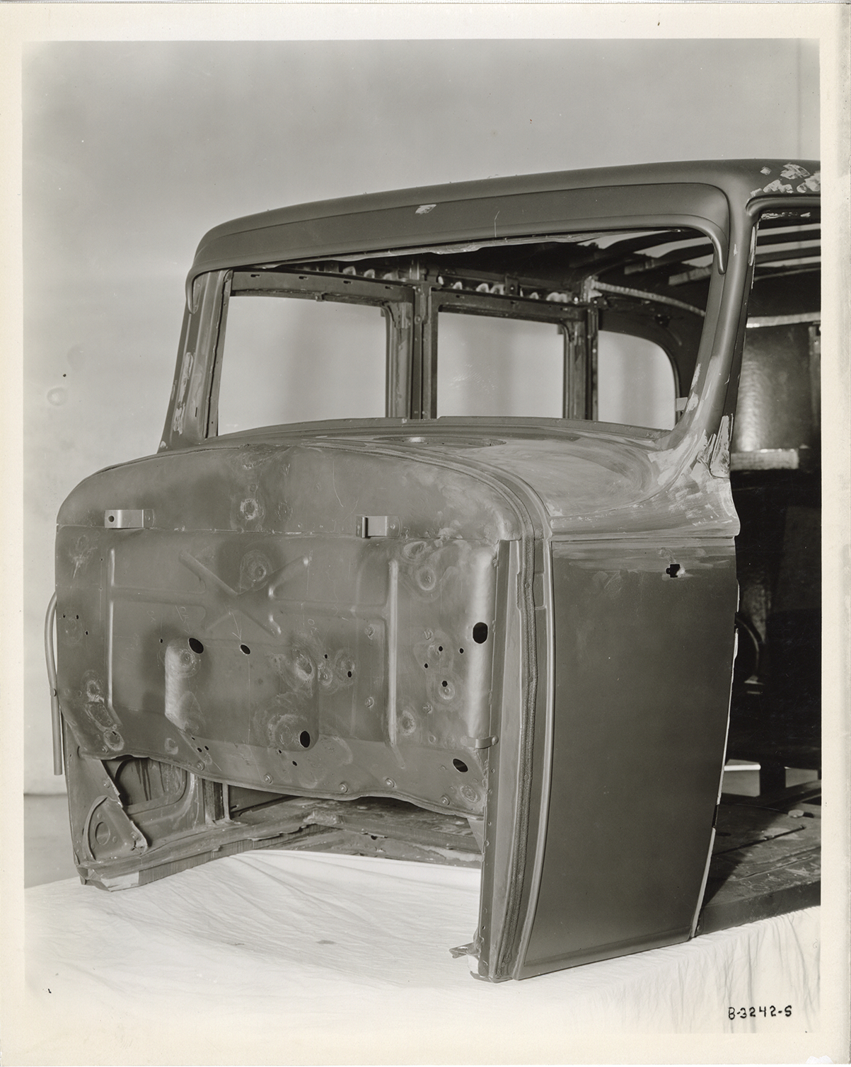 View of the steel body for 1932 Hudson and Essex Terraplane cars. Handwritten on back: "Oct. 14/31. Front end Hudson Essex steel body."