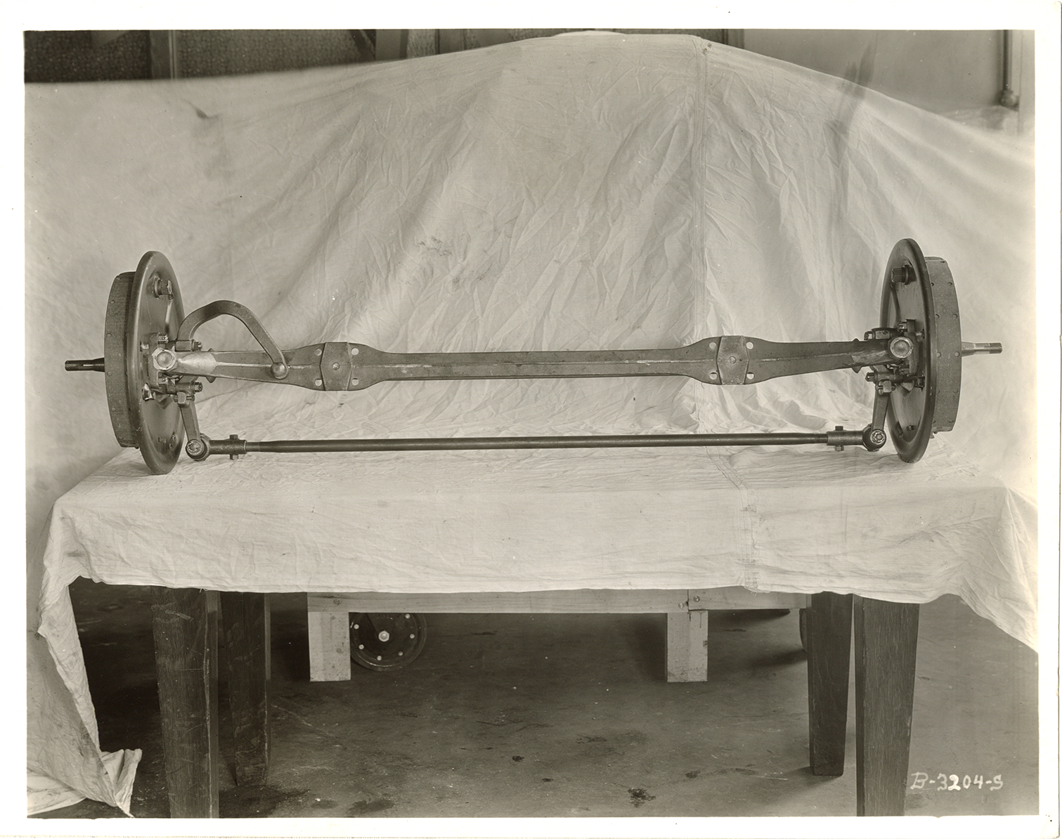 View of the front axle assembly for 1932 Hudson and Essex Terraplane cars. Handwritten on back: "Sept. 29/31. Hudson-Essex front axle assembly."