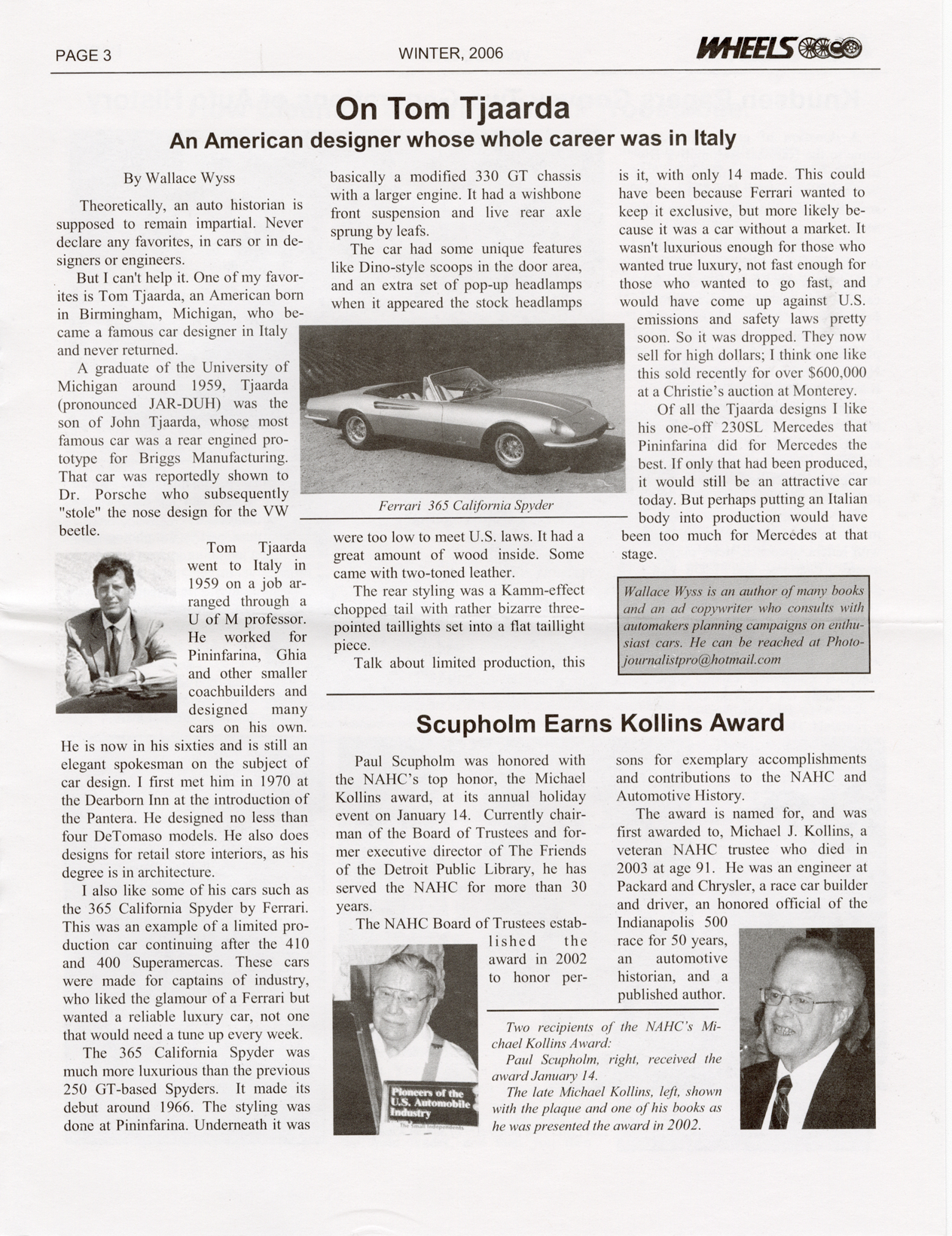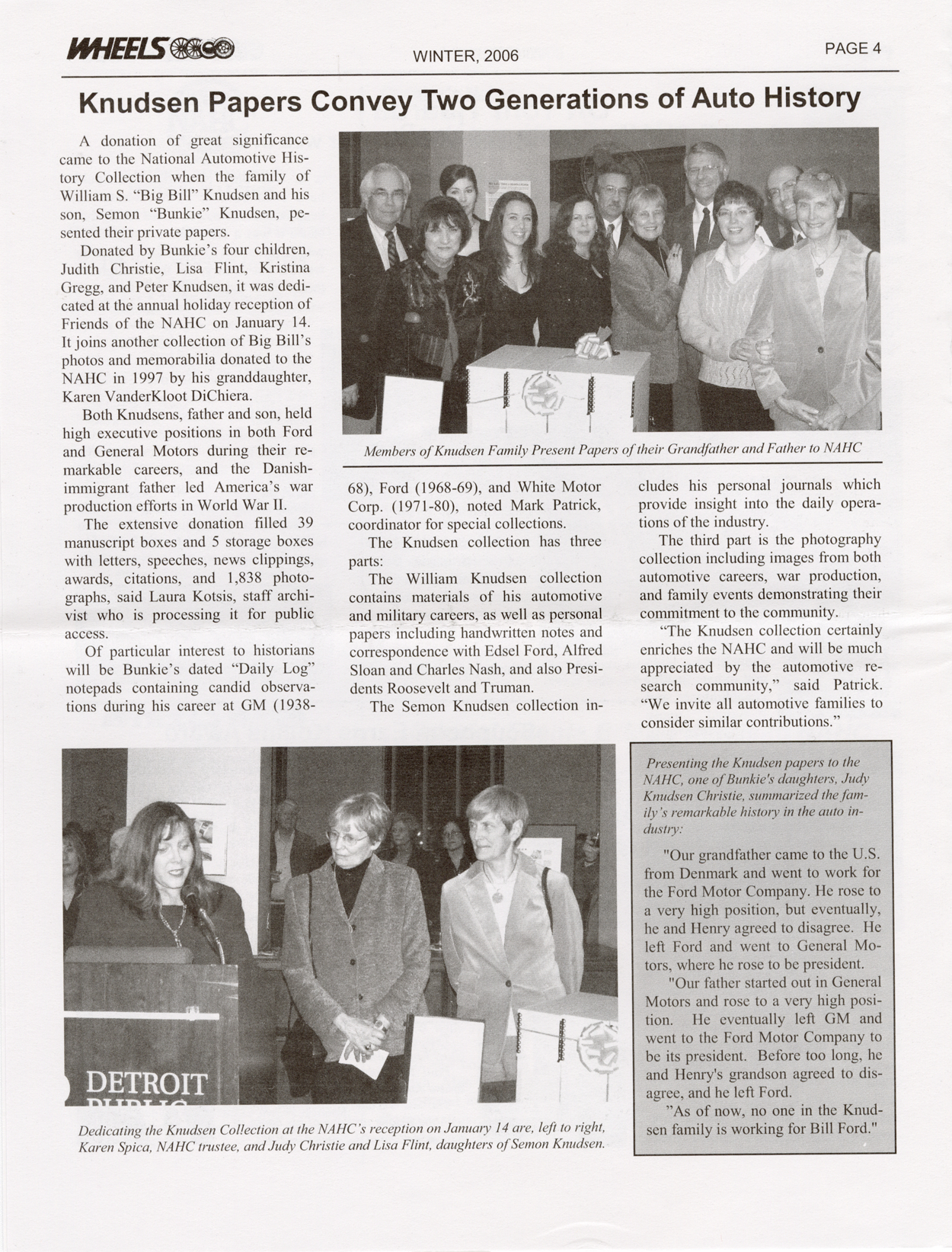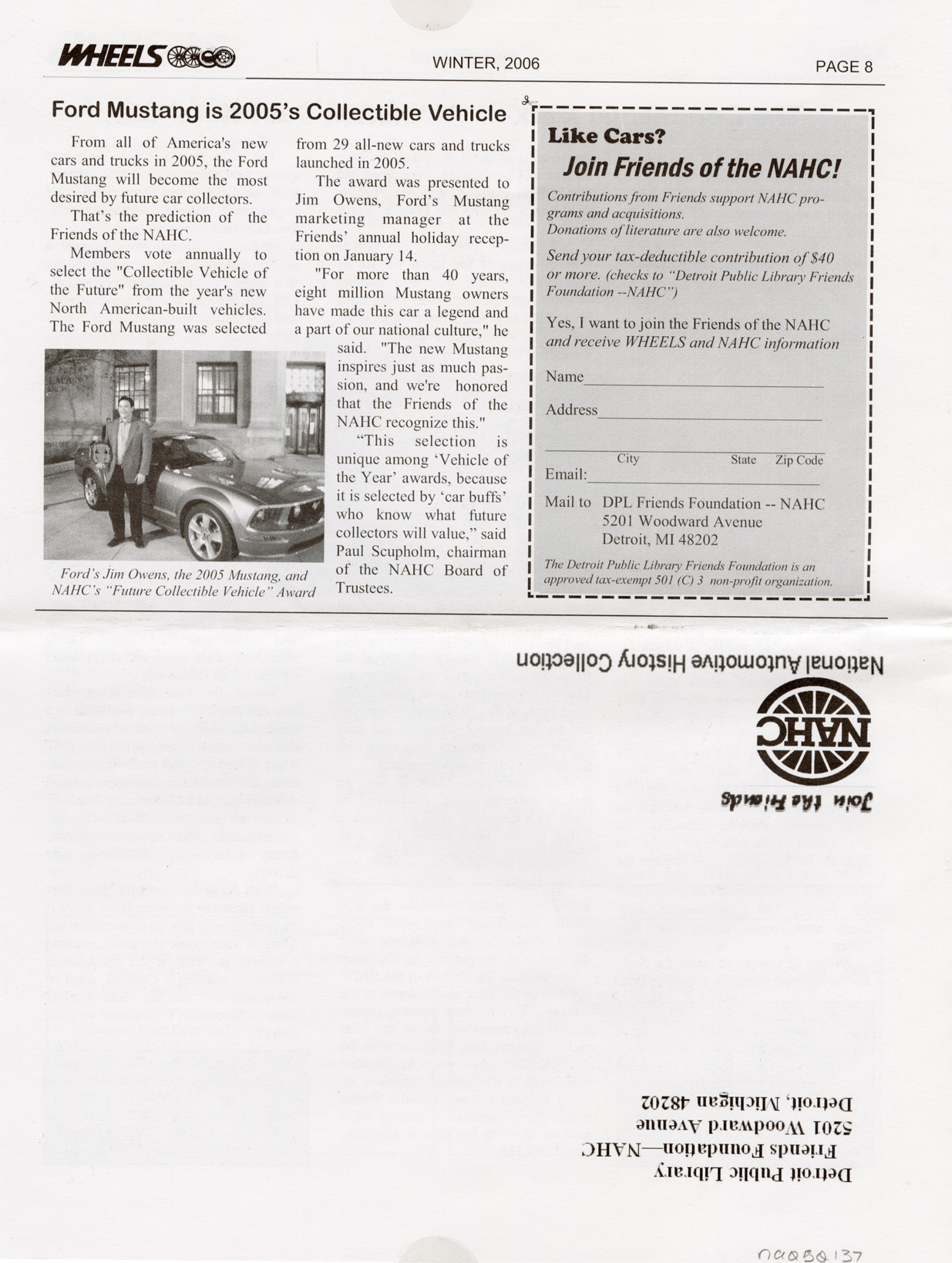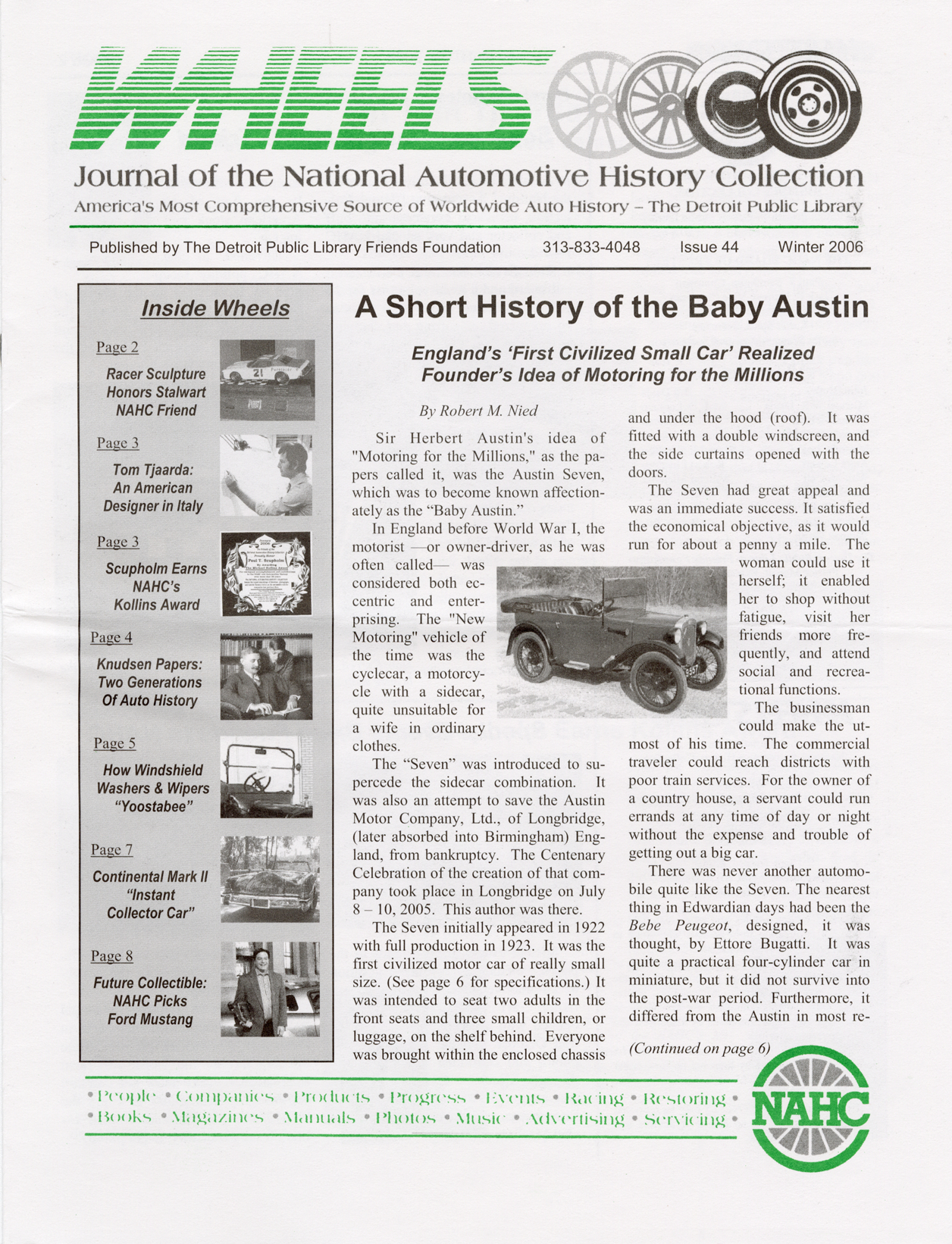 Wheels : journal of the National Automotive History Collection / Friends of the Detroit Public Library. Issue 44, Winter, 2006.
