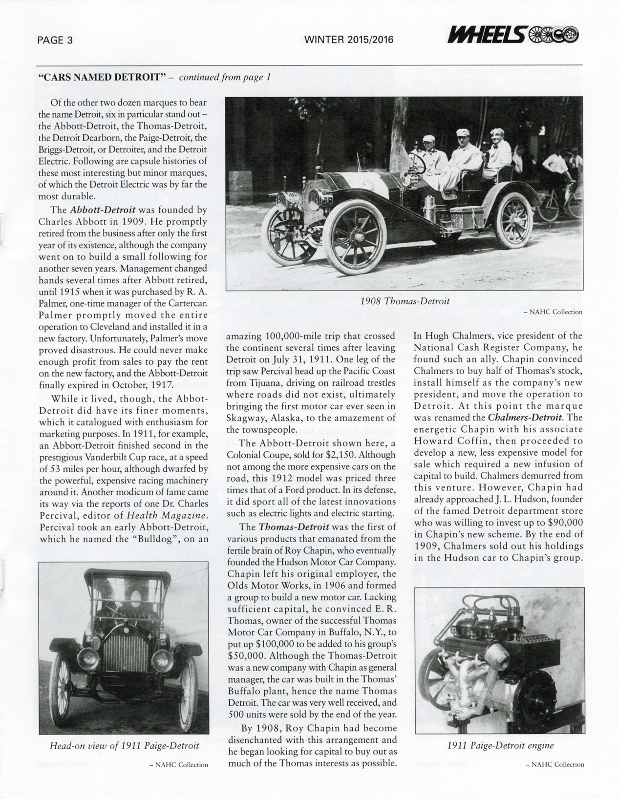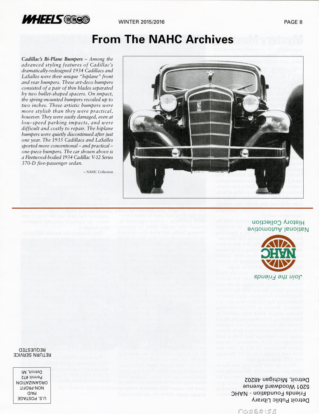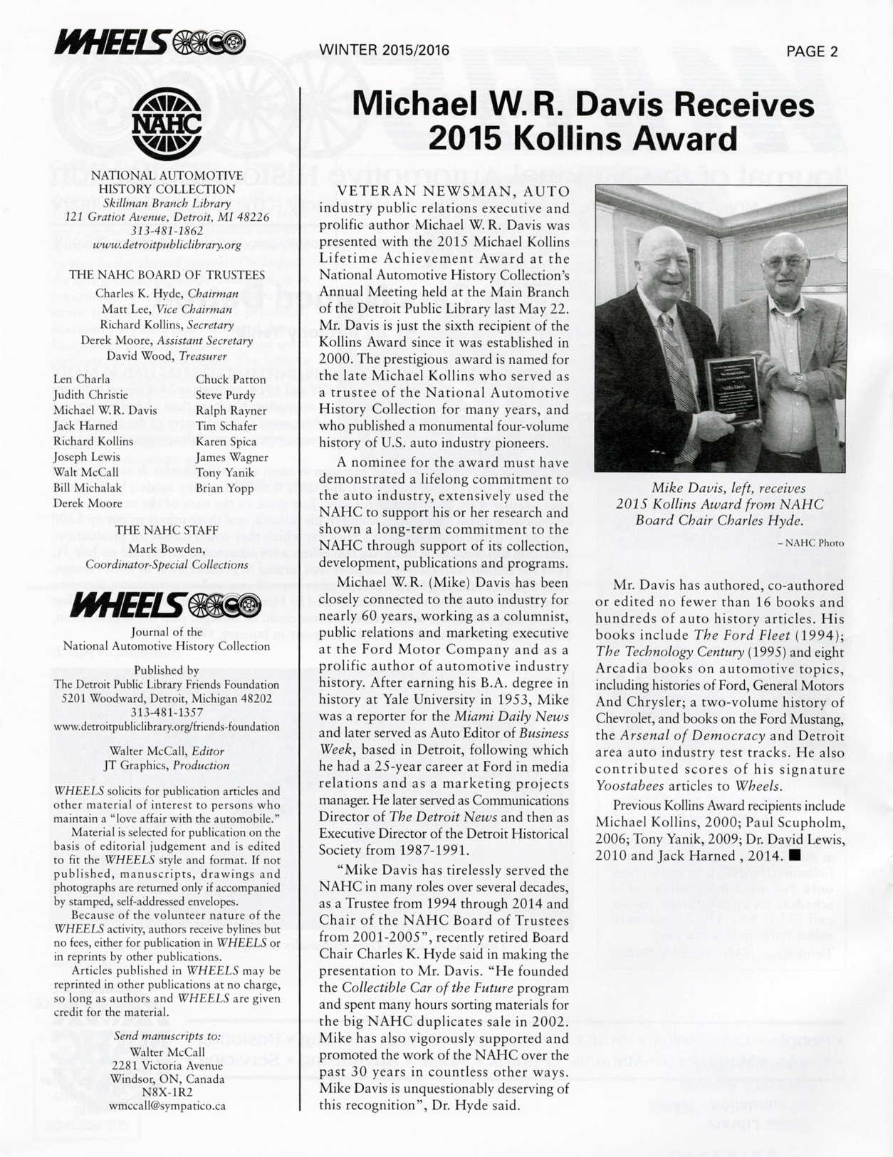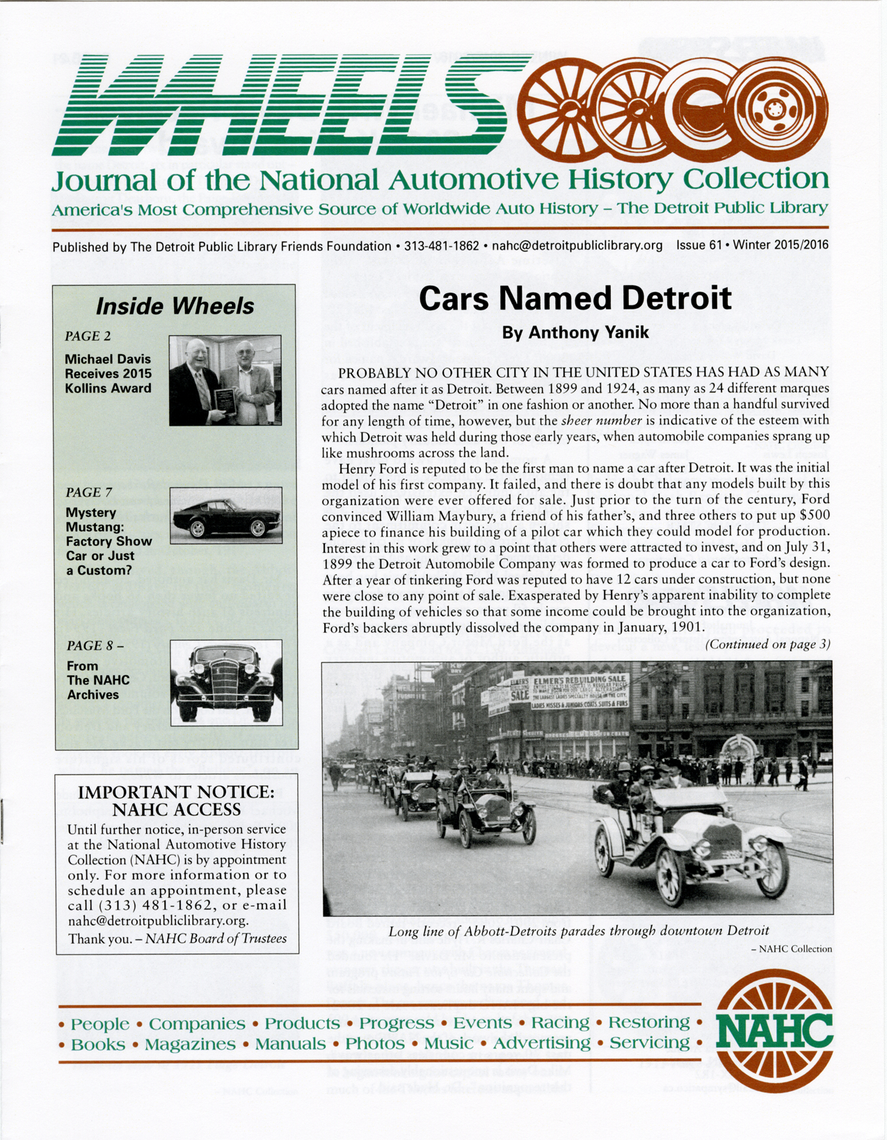 Wheels : journal of the National Automotive History Collection / Friends of the Detroit Public Library. Issue 61, Winter, 2015/2016.