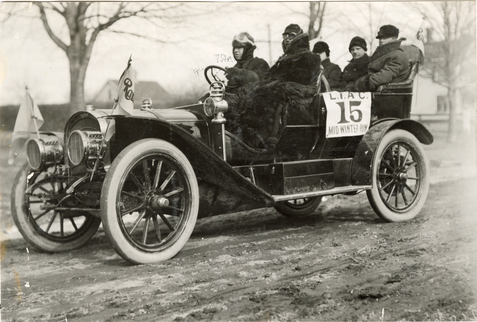 Motorists in 1909 Rambler automobile, Long Island Automobile Club Mid-Winter Tour