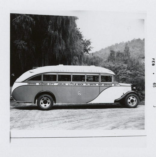 View of a Flxible bus for the Santa Fe Trail System. Printed on front: "Feb 65." Handwritten on back: "Flxible."